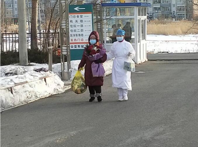 病例8,女,51岁,大庆市让胡路区人, 2020年1月30日确诊为新型冠状病毒肺炎确诊病例,在大庆市新冠疫情定点救治中心住院隔离治疗。2月6日诊断为新冠肺炎重型,该患者病情较重,省、市级专家多次会诊,经过医护人员的精心治疗和护理,患者已平温三天以上,临床症状明显改善,肺部影像学显示明显吸收,连续两次2019-nCOV核酸检测阴性。经大庆市新冠疫情定点救治中心专家会诊,符合《新型冠状病毒肺炎诊疗方案》(试行第五版 修正版)解除隔离出院标准,今日出院。