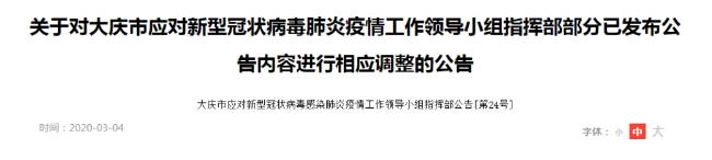 (一)《大庆市应对新型冠状病毒感染肺炎疫情工作领导小组指挥部公告(第1号)》第三条中“市区公交、长途客运停止运营。”修订为“市区公交、长途客运有序恢复运营。”