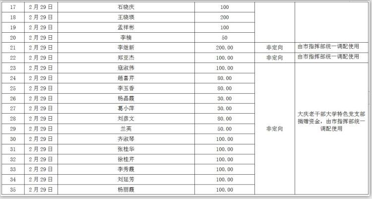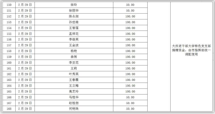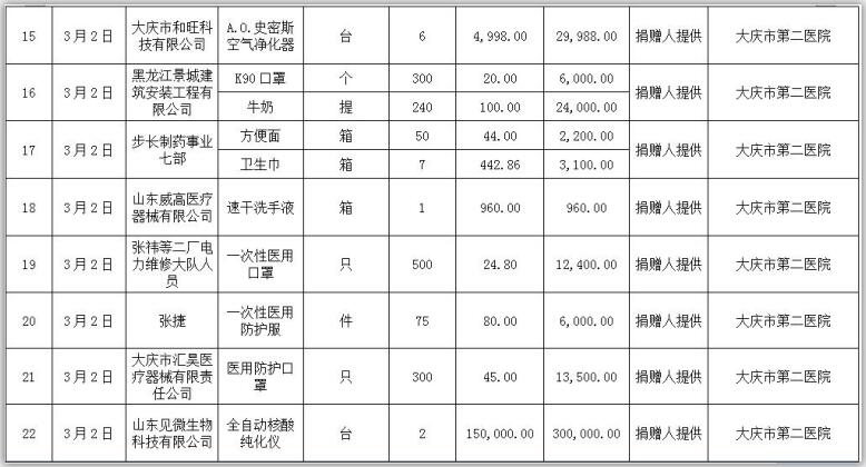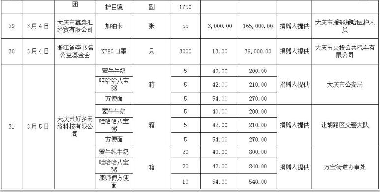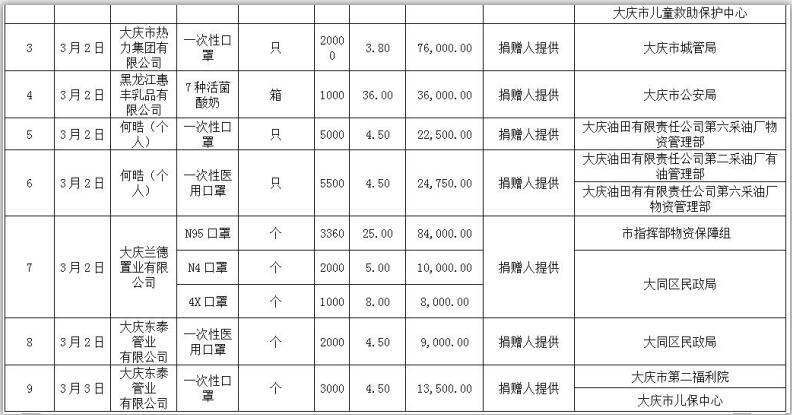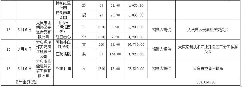 新冠肺炎疫情发生以来,海内外各界爱心企业和爱心人士纷纷慷慨解囊、极尽所能为大庆捐款捐物,表现出了浓浓的家国情怀。关于接收社会各界爱心企业和爱心人士捐款捐物的公示
