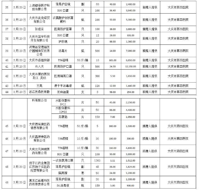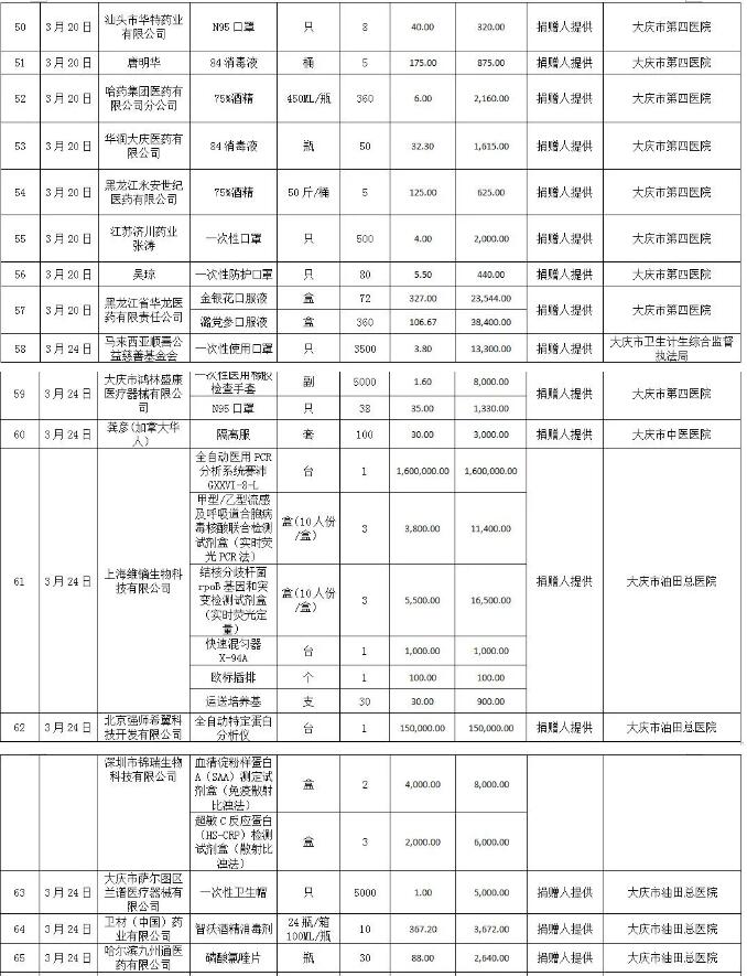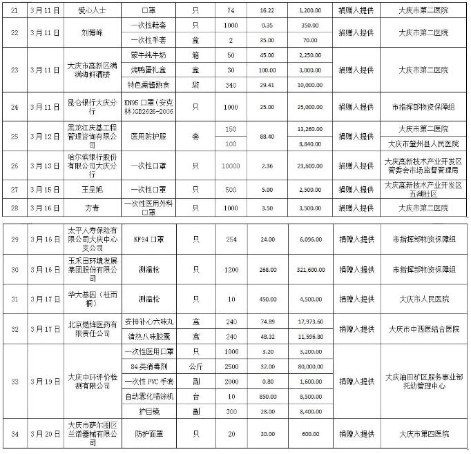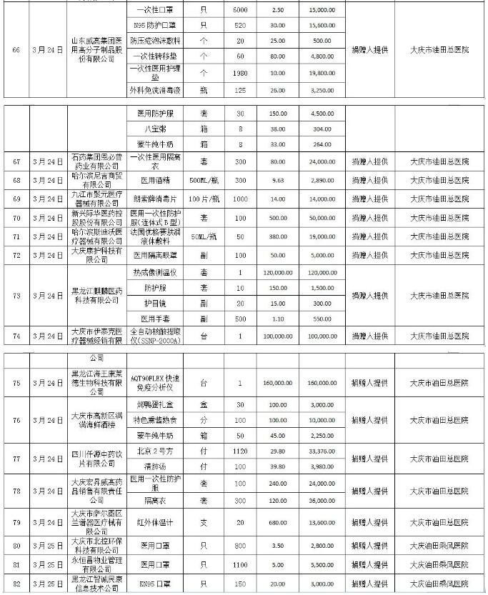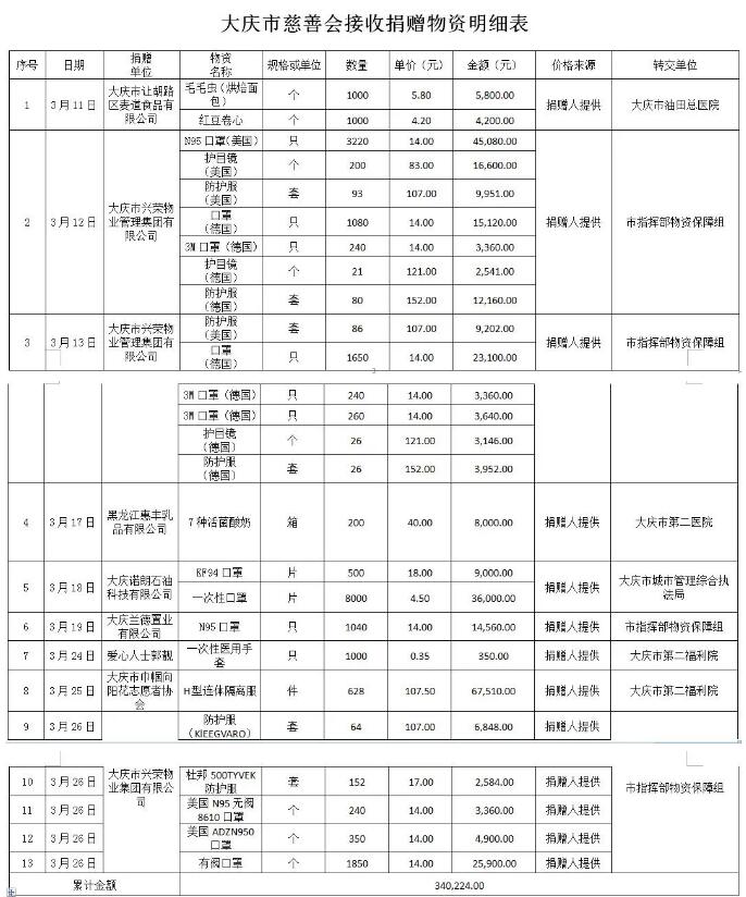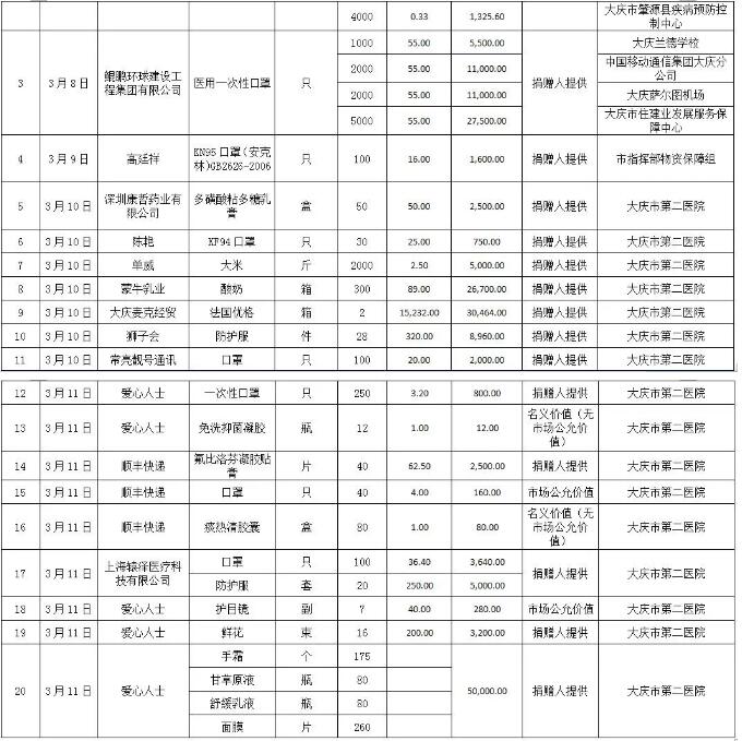 新冠肺炎疫情发生以来,海内外各界爱心企业和爱心人士纷纷慷慨解囊、极尽所能为大庆捐款捐物,表现出了浓浓的家国情怀。
