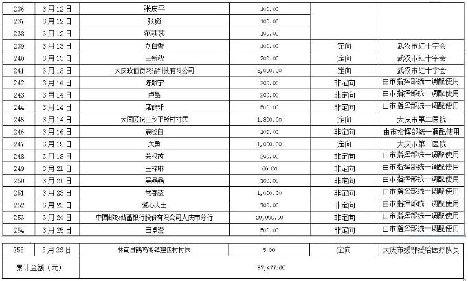 大庆市红十字会 大庆市慈善会 关于接收社会各界爱心企业和爱心人士捐款捐物的公示(第8号)