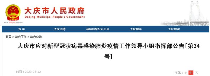 大庆市应对新型冠状病毒感染肺炎疫情工作领导小组指挥部公告[第34号]