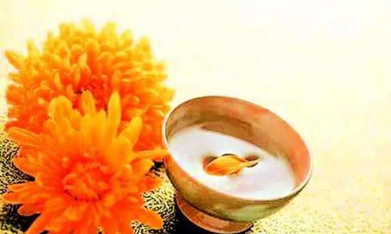 菊花含有养生成分,晋代葛洪《抱朴子》有南阳山中人家饮用遍生菊花的甘谷水而益寿的记载。重阳佳节饮菊花酒,是中国的传统习俗。菊花酒,在古代被看作是重阳必饮、祛灾祈福的“吉祥酒”。