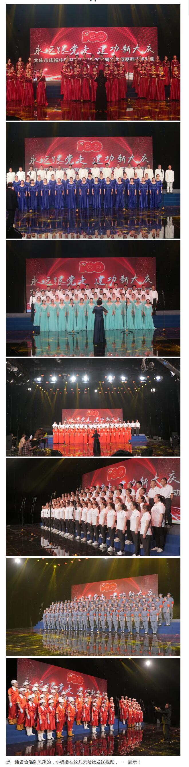 6月2日、4日,由市委组织部、市委宣传部、市总工会主办,大庆广播电视台承办的“永远跟党走,建功新大庆”庆祝中国共产党成立100周年大型系列主题活动暨首届职工文化艺术节——职工合唱比赛,在大庆广播电视台演播大厅开唱。