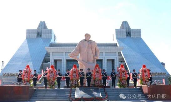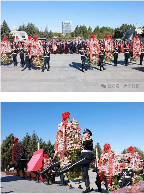 大庆地企向铁人雕像敬献花篮!李世峰朱国文致辞