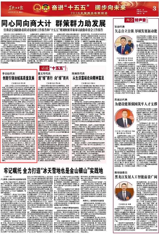 3月7日 《黑龙江日报》刊发 《话说“十五五”|李岩松代表:创新引领油城高质量发展》 |