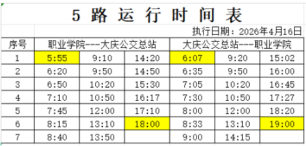根据目前公交线路客流量以及道路通行条件发生变化,大庆市油城公共交通运输有限公司计划从2026年4月16日起,对5路公交线路部分运行时间进行微调。