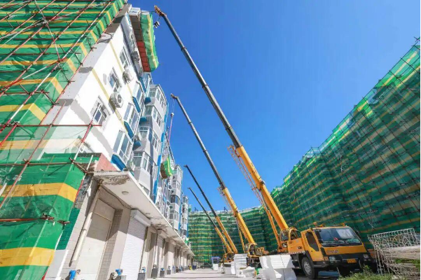 老旧小区楼体外墙修缮,旧貌换新颜。